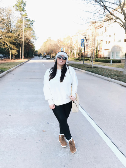 I live in Houston - Texas, and if you are familiar with southern states weather, you know we don't get proper winter. Ever. Nonetheless, the past days have felt amazing. I am talking 30F degree, sunny, light breeze. Just amazing for my taste. Which is why I was prompted to bring out the fluffy ear warmers that I would usually wear for skiing. If you keep visiting the site, you will soon find out that I am a sucker for hair accessories. They just give that POP to the outfit that makes it different, fresh, good.